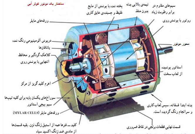 مهمترین اجزای موتور کولر آبی شامل عناصر حیاتی زیر است: